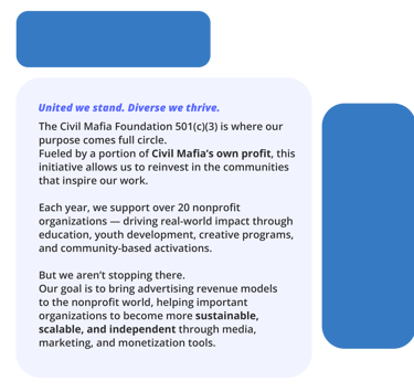 The Civil Mafia Foundation is where our purpose comes full circle.