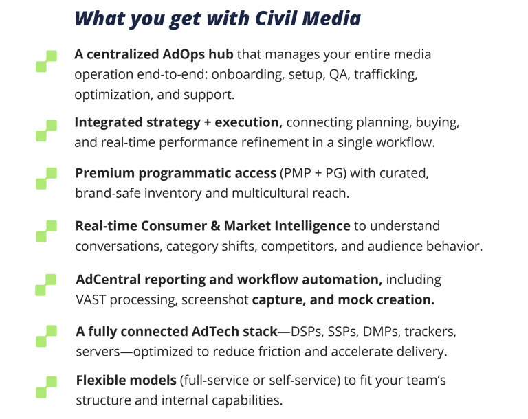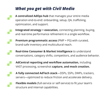 It started with our legacy partners — clients that believed in our vision early on and helped us co-create the tools, ideas, and systems that we later scaled up to create Civil Media.